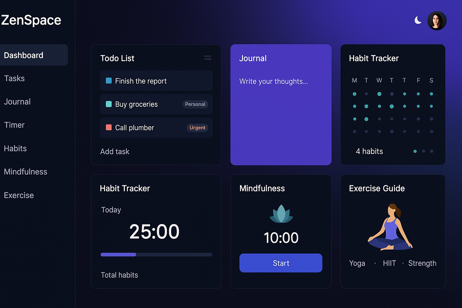A web-based productivity platform combining task management, journaling and mindfulness.